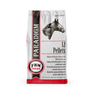F-R-M PARADIGM 12 PELLETS should be fed with a minimum of 1% of body weight per day of good quality hay or pasture equivalent. Maximizing the contribution of forage reduces digestive upset.